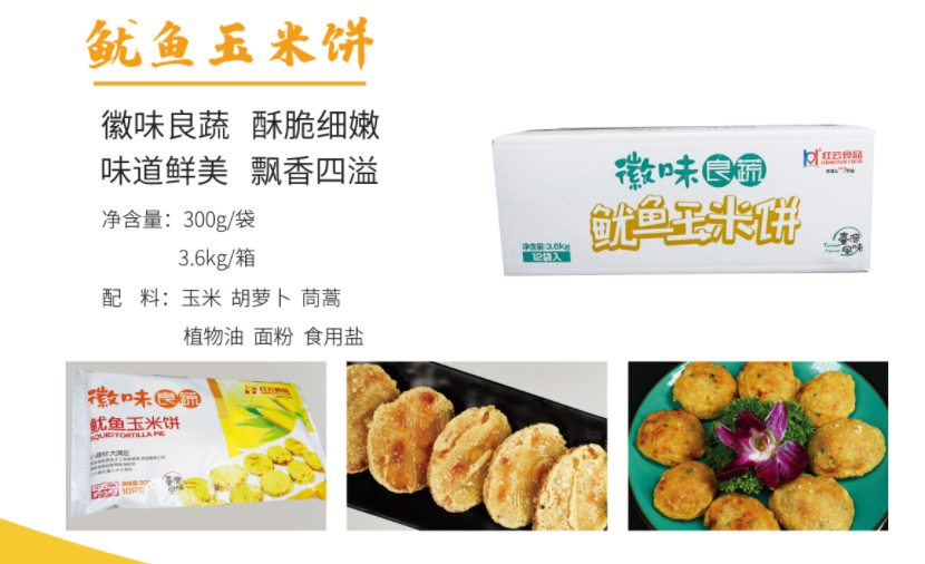五福臨門 油炸黃花魚 魷魚玉米餅 魷魚蓮藕餅 雪花排條 天婦羅帶魚 可可缸豆餅 黃金玉米烙